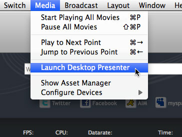 そうして、画面上部のメニュー「メディア」から「Desktop Presenterを起動する」を選びます