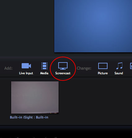 そして、Ustream Producer の操作画面が出てきます。そこの「 Screencast (スクリーンキャスト)」のボタンを押してください。
